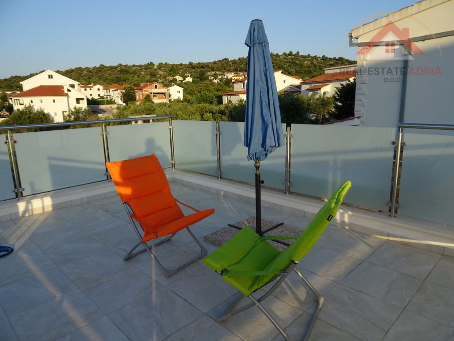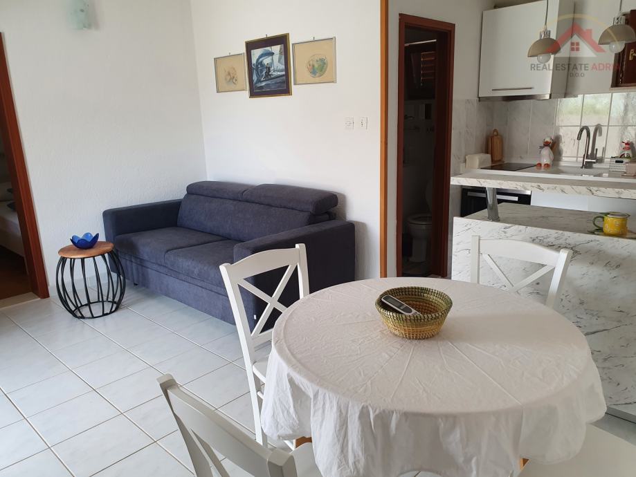 Stan na 1. katu sastoji se od 2 dvokrevetne sobe, kupaonom-toaletom sa tušem, kuhinjom sa dnevnim boravkom i blagovaonom, te natkrivenom terasom od 30 m2.