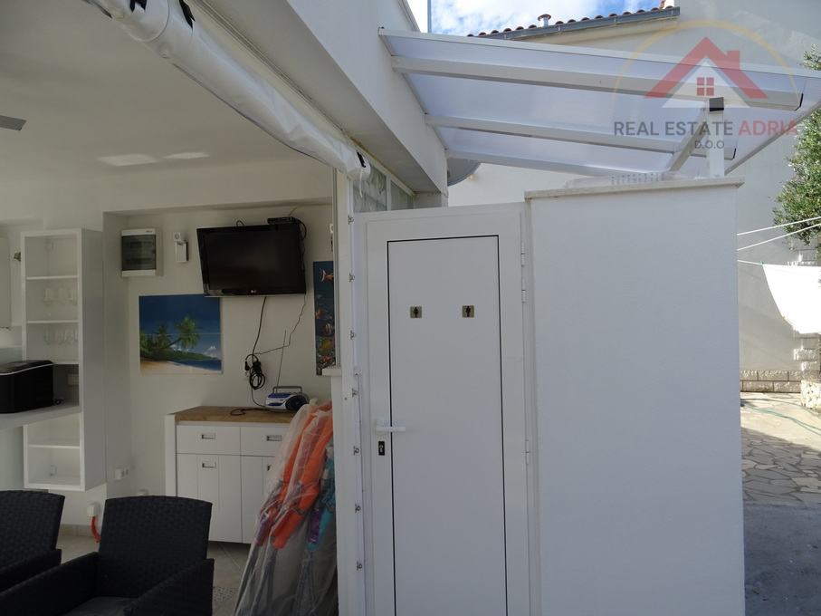 Zajednički prostori su; parking za 4-5 auta, bazen skriven od pogleda sa ulice, wc, vanjska terasa sa kuhinjom za noćna druženja i zabave, roštilj, ostakljeno sunčalište za nudiste, jacuzzi za 6 osoba, tuš s toplom vodom, poseban prostor za večernju intimu, sunčalište sa ležaljkama, parking za čamac, stol za stolni tenis.