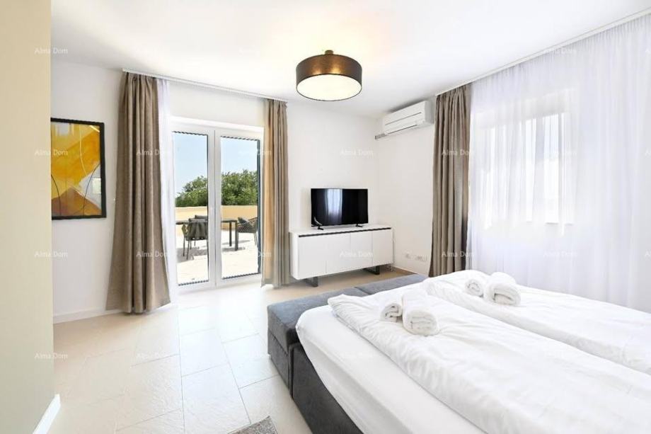Na prodaju moderna i opremljena villa s bazenom, 198 m2, smještena u mirnom dijelu Umaga, okružena zelenilom i privatnošću – idealna za obiteljski život ili luksuzni turizam.