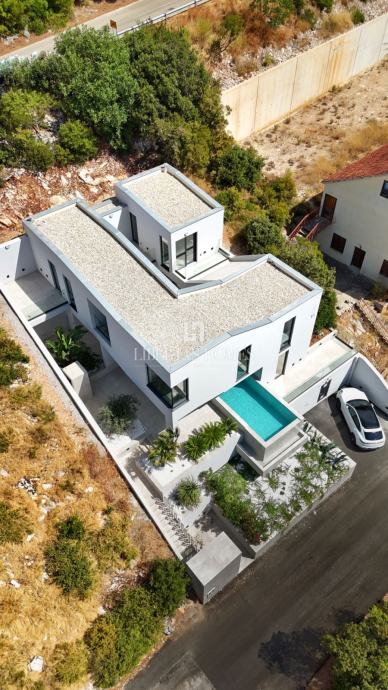 Uređeni eksterijer obuhvaća mediteranski vrt s automatskim navodnjavanjem, dva parkirna mjesta s pripremom za automatsku kapiju i punionicu električnih vozila, te vanjski tuš za osvježenje nakon kupanja.