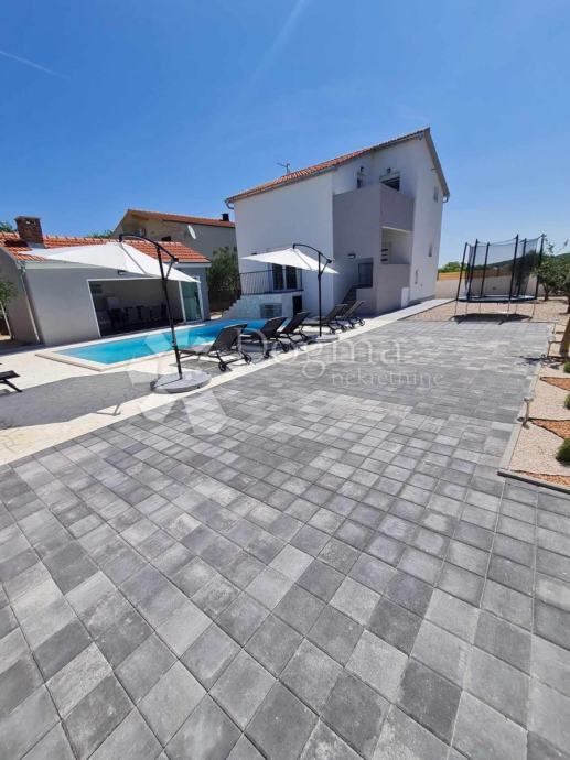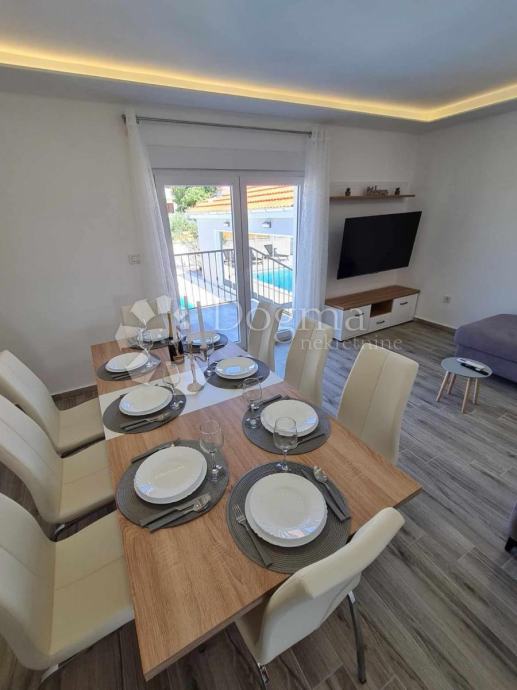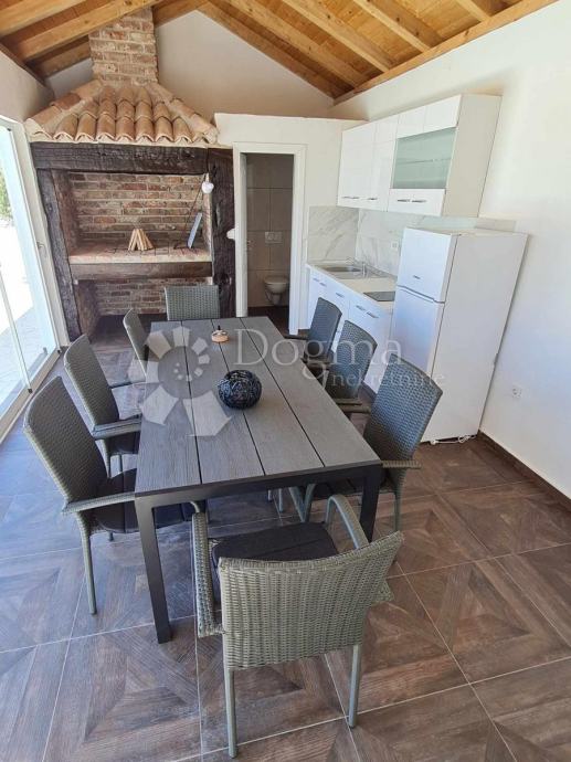 Prostrana kuća ima 4 odvojene spavaće sobe, 2 kupaonice, koji se nalaze na katu kuće, u prizemju se nalazi potpuno opremljena kuhinja s blagovaonicom i perilicom posuđa te dnevni boravak sa blagavaonskim stolom,još jedno kupatilo i wc. U podrumu se nalazi jedan soba i ostatak prostora je prostoar za biljar i pikado.. Gosti mogu uživati u ambijentu okolice iz vanjske blagovaonice
