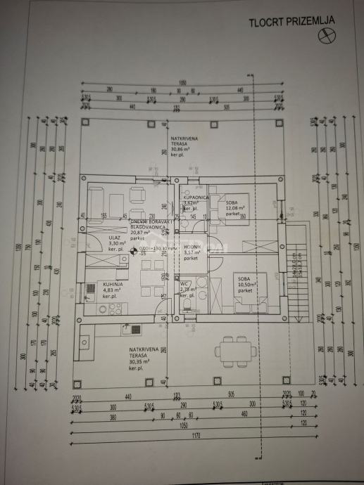Do sada su izrađeni podrum i temelji kuće. Podrum ima površinu od 36 m², a kat kuće ima tlocrtno 141,75 m²