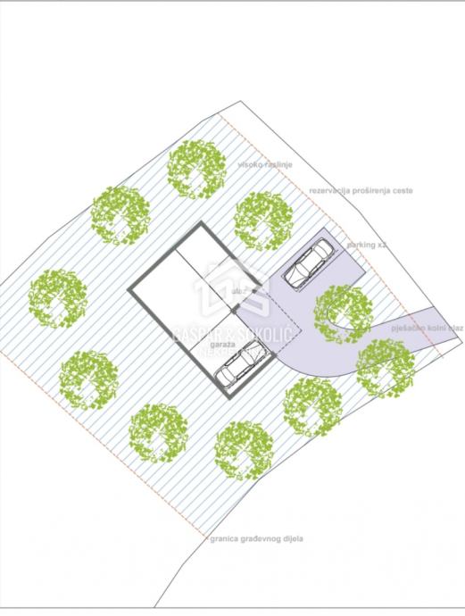 Ukupna površina zemljišta omogućava gradnju obiteljske kuće s maksimalnom bruto razvijenom površinom (BRPA) do 400 m², što pruža dovoljno prostora za izgradnju prostrane i funkcionalne kuće prema vašim željama i potrebama.