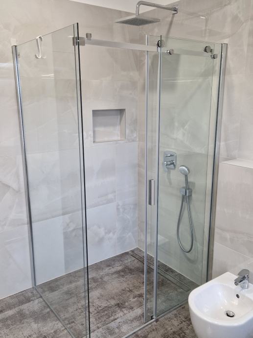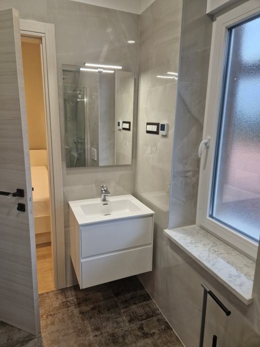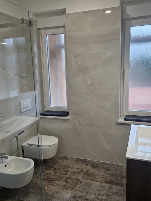 Prodajem stan na drugom katu zgrade 3S+DB u centru Trsata. Stambena zgrada ima novi krov, novu fasadu (8cm stiropor), novu stolariju na stepeništu. Stan je kompletno renoviran (betonska ploča, novi zidovi, nova stolarija s troslojnim staklima, električne roletne, protuprovalna vrata, struja, voda, plin...). Grijanje cijeloga stana je riješeno putem podnog grijanja (plin-voda), svaka prostorija zasebno ima svoj termostat, topla voda je putem plinskog protočnog bojlera Vaillant. Klimatizacija u svakoj prostoriji putem inverter multi-split sistema (jedna vanjska jedinica, četiri unutarnje jedinice HITACHI). Kompletno novo namješten stan sa svim aparatima, nikada korišteno.