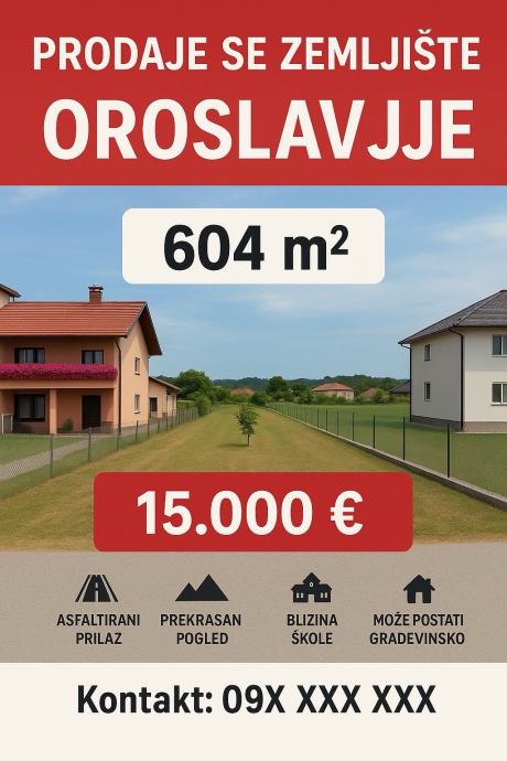 PRODAJE SE ZEMLJIŠTE – OROSLAVJE, 604 m²
