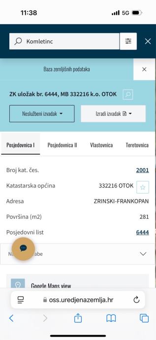 Prodaje se navedena kuća na lokaciji Grad Otok, Ulica Zrinski Frankopana 49A, uz kuću ide i zamljiste iza kuće. Kupljena na dražbi u 09mj 2025, placeno ukupno sa porezom oko 26500€, cijena je fixna nije podlozna promjenama. Za sve upite javite se na broj 0993392722, pogledat se moze bilo koji dan, trenutno nema slika unutrasnjosti jer je u fazi ciscenja. Vlasnistvo cisto 1/1, voda, struja, za kanalizaciju ne znam, susjed kaze da je kuca spojena na kanalizacijski sustav, tako da to treba provjeriti, na kući je PVC stolarija, krov je preuredjivan, podaskan, kao i pod ispod krova. Kuća trazi kompletnu renovaciju, ima puknuce zida vidljivo sa vanjske i unutarnje strane, nista nije krpano i sakrivano, sve se vidi i prodaje u zateknutom stanju, jedino sam angazirao ljude da iznesu stvari iz kuce i odnesu na deponiju. Iza kuce se nalaze pomocne prostorije od kojih su neke u losem stanje a ostatak je tvrda novija gradnja.