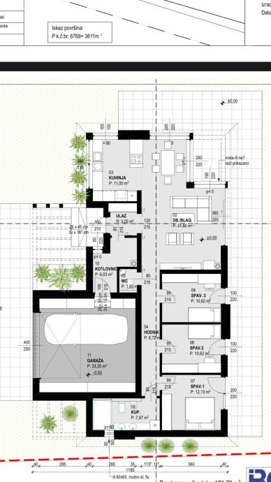 - Terasa na zapadnoj strani duž cijele kuće 48m2