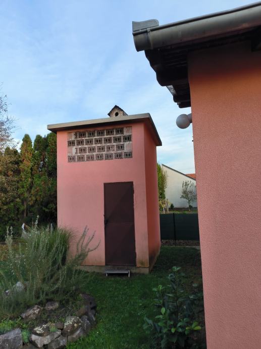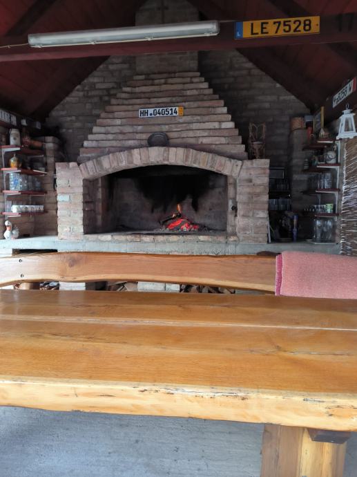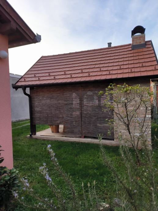 Kuća je smještena na parceli od 420m2, uz kuću se nalazi garaža, pušnica i nadstrešnica s pecarom.