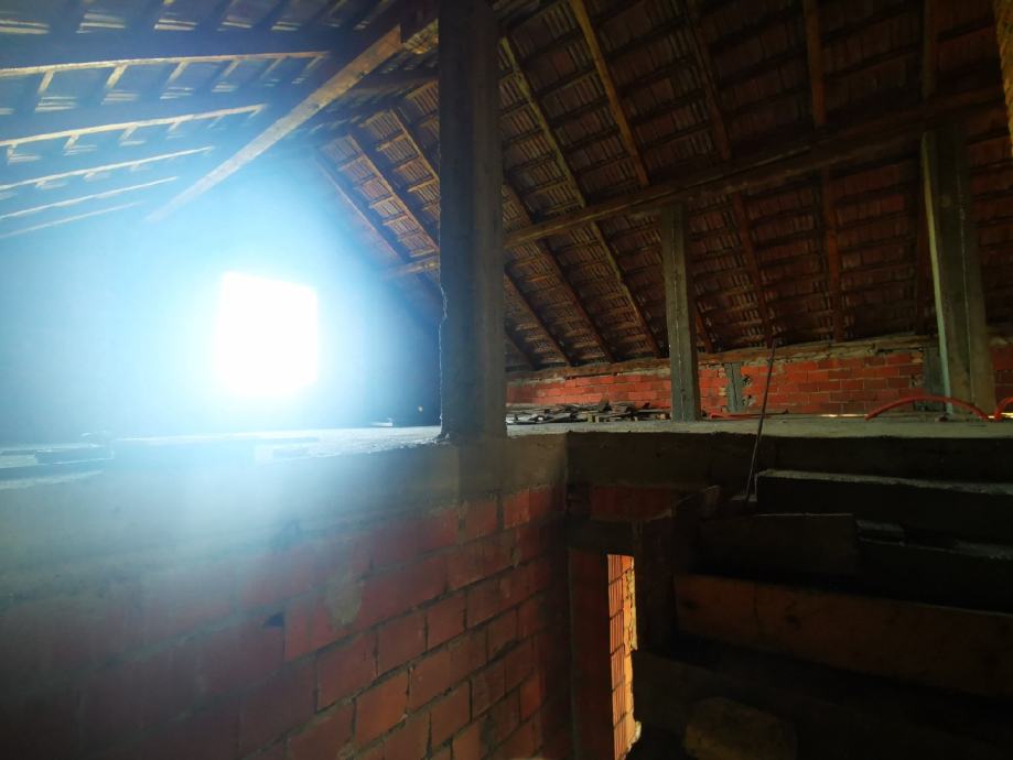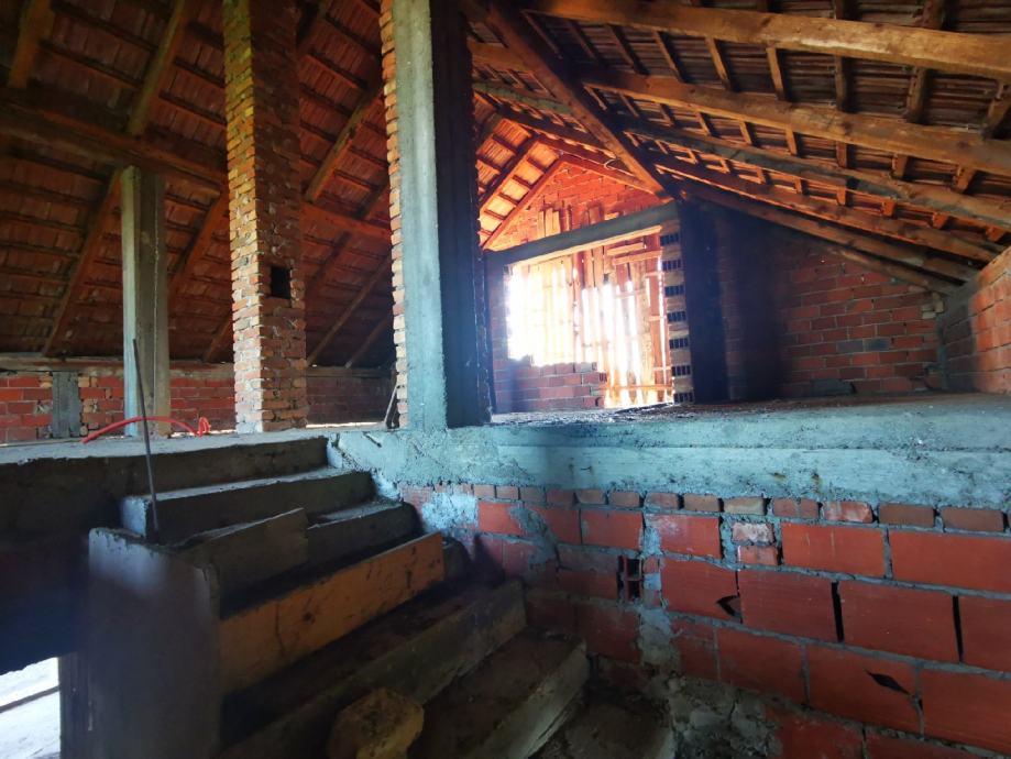 120m2 podrum, 120m2 priz, 120m2 potkrovlje. Struja priključena i razvedena, plin na kući
