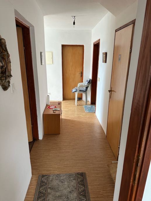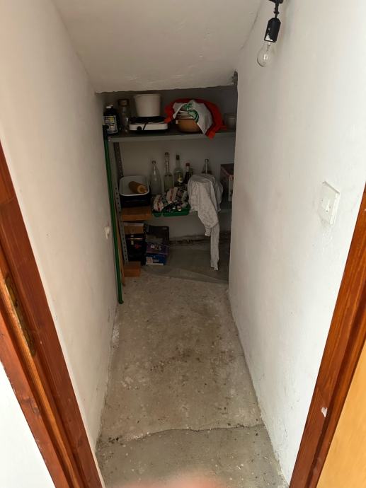 Dolje se nalazi dnevni boravak i kuhinja,hodnik,spavaća soba,ostava,kupaona te izlaz prema garaži i još jedna prostorija,na katu ima 3 sobe i kupaona..