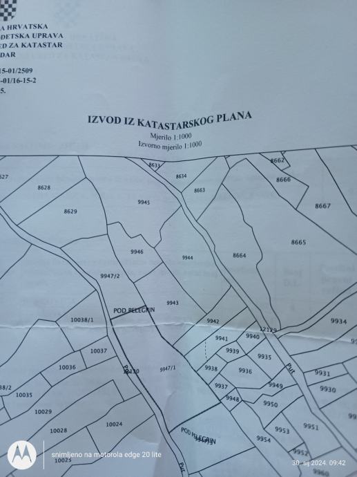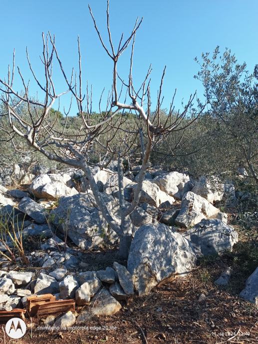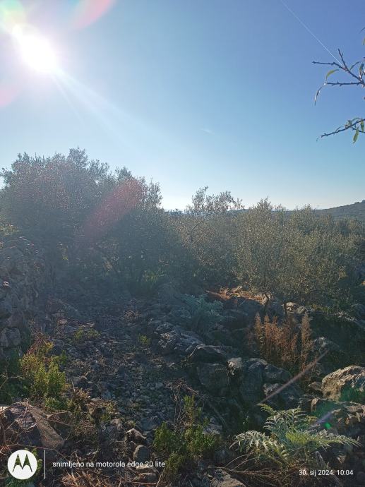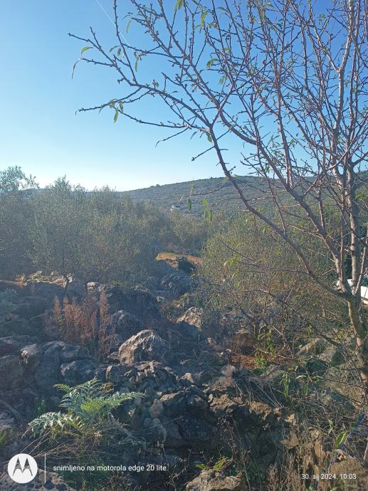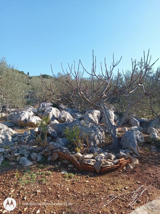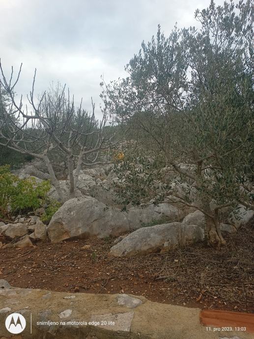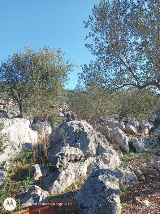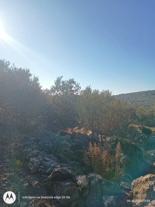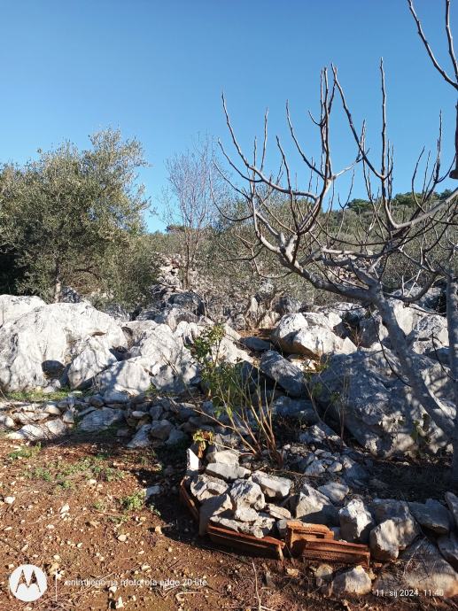 Ima 450 metara terena sa 6 maslina mladih i nesto starije,teren je stjenovit nije za kopanje osim ako se zeli moze se stijene iskopati itd.vise je za kamp kucicu i malo vrtla sa maslinama ima lipi pogled na more a more nije daleko