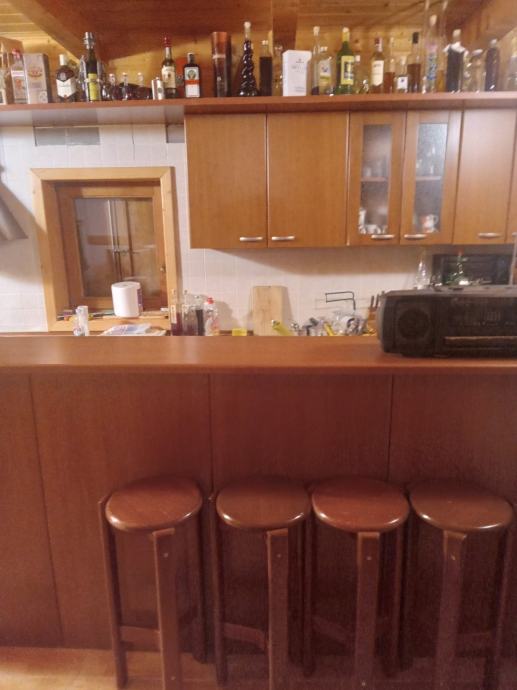 Drvena hrastova kuća 204 m2, šest soba, dnevni boravak, kuhinja, 2 toaleta (1M+1Ž) i zidana od cigle nadstreha zatvorenog tipa, 7 stolova, 52 stolice, krušna peć, pecara, 2 wc-a, skladišta 2 manja. Ukupno 277m2 pod krovom.