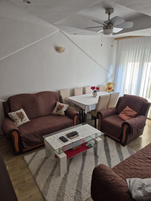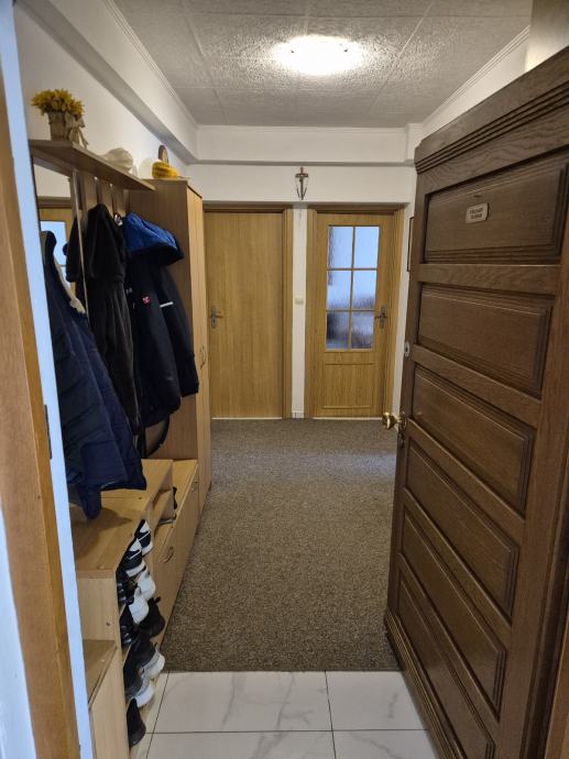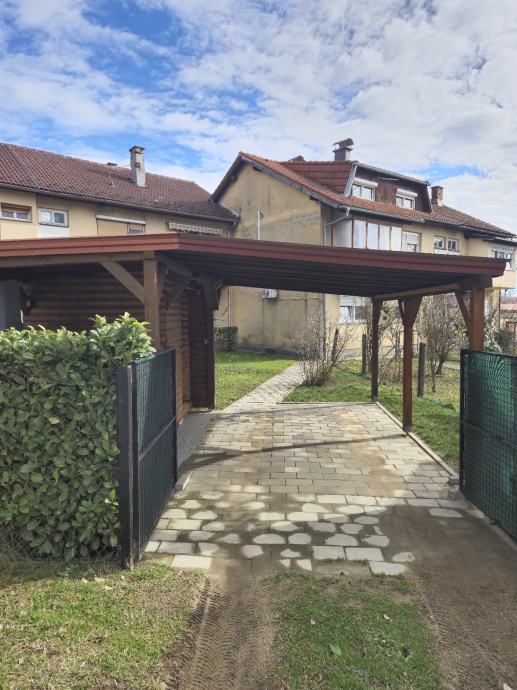 Prodajem trosoban stan u Sesvetama(gajišće)u prizemlju zgrade sa 4 stana.Stan se sastoji od ulaznog hodnika kupaonice dvije spavaće sobe, kuhinjom sa ostavom te dnevnim boravkom sa izlazom na terasu popločanu kockama te potpuno ograđenu lovor višnjom i uređenim dvorištem.Iza zgrade stanu pripada vrt cca 100m2 sa vrtnom kućicom(razvedena struja),roštiljem te natkrivenim parking mjestom sve uređeno i popločano kockama ograđeno lovor višnjom skriveno od pogleda te ugodan komfor.Uz stan dolazi i zidana garaža cca15 m2.Stan se nalazi na odličnoj lokaciji u blizini svih sadržaja za komforan život.U neposrednoj blizini od 100 metara se nalazi osnovna škola,dva vrtića,trgovina se nalazi uz zgradu, dom zdravlja 5 min hoda.Stan je 500 metara od centra Sesveta.cijena nije fiksna.