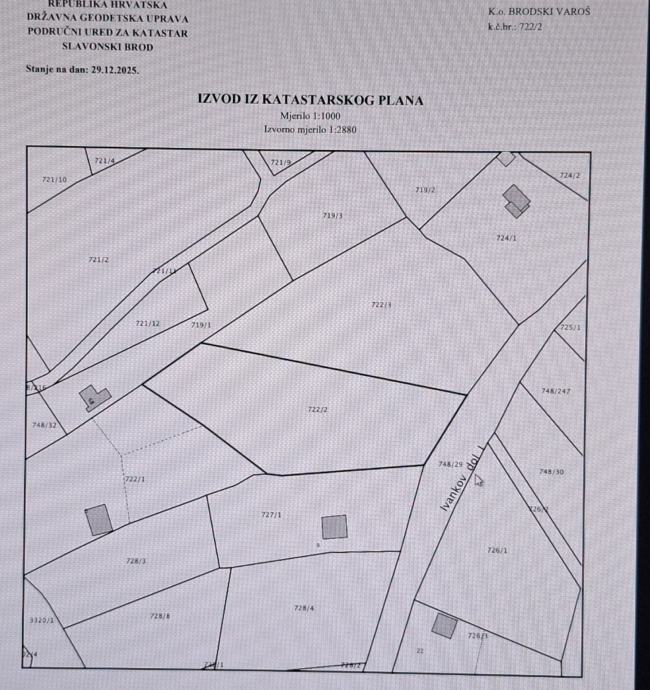 Prodajem zemljište u Slavonskom Brodu (Brodski Varoš, Ivankov dol I, br. č. 722/2) velicine 2720 m2. Na parceli se nalazi nešto šljiva i lješnjaka. Do parcele dolazi asfaltirani put. Vlasništvo uredno. Struja i plins dolaze odmah do parcele. Cijena nije fiksna.