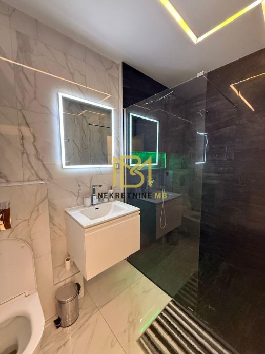 Stan se sastoji od dvije spavaće sobe, wc-a sa tuš kabinom, dnevnog boravka, kuhinje i balkona.