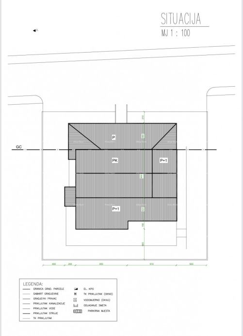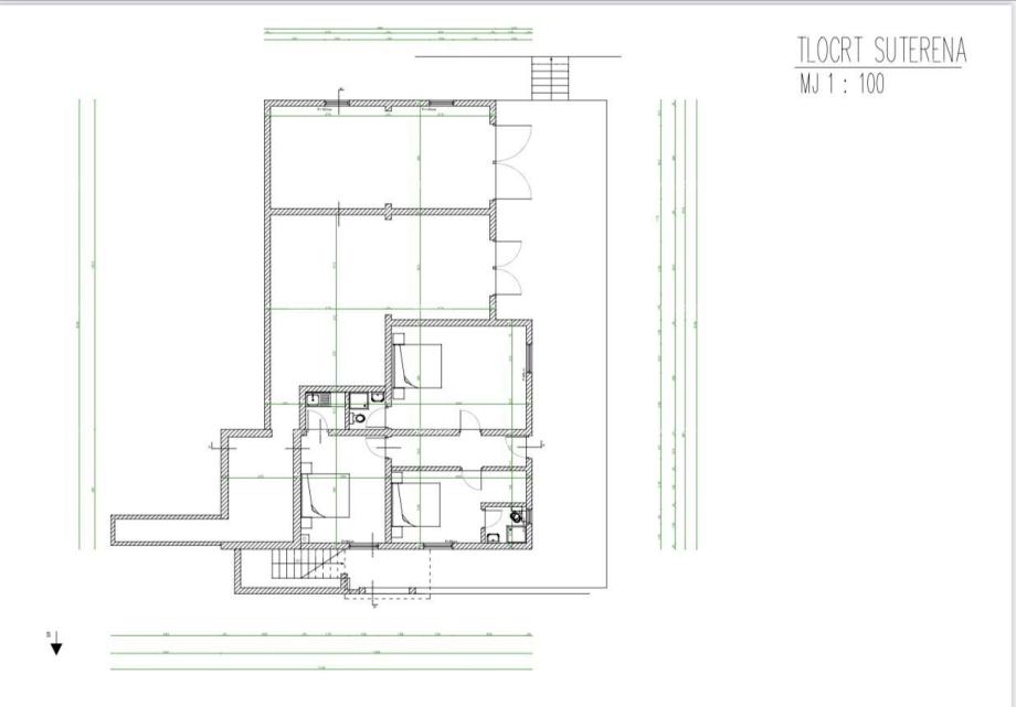 Zgrada se sastoji od 4 etaže: suteren, prizemlje, prvi kat i potkrovlje. Suteren uključuje 3 spavaće sobe, 2 kupaone, vešeraj,dvije garaz