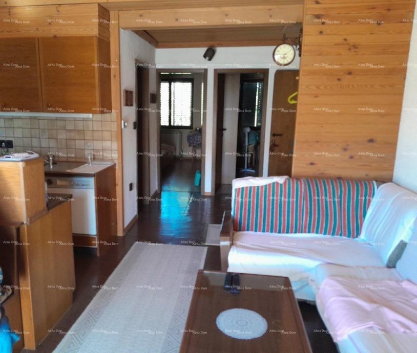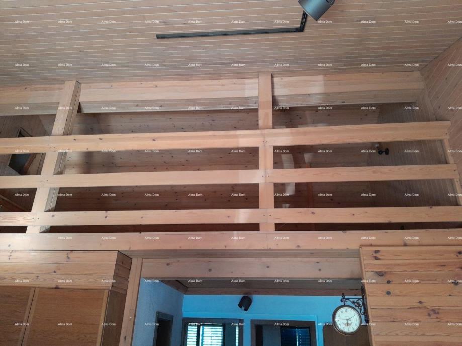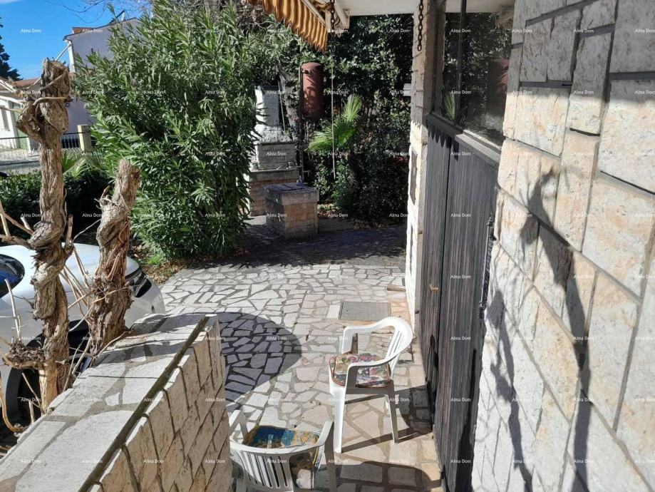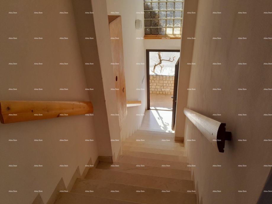 Kuca je površine 110 m2 a vrt 100 m2. Pola kuce prodaje se u vertikali s lijeve strane kuće. Prizemlje ima ulaz, dnevni boravak sa kuhinjom, spavaću sobu, na katu je isti raspored, osim sto je uz plafon napravljen mali podest s stepenicama i smjesten krevet. Kat posjeduje i balkon.