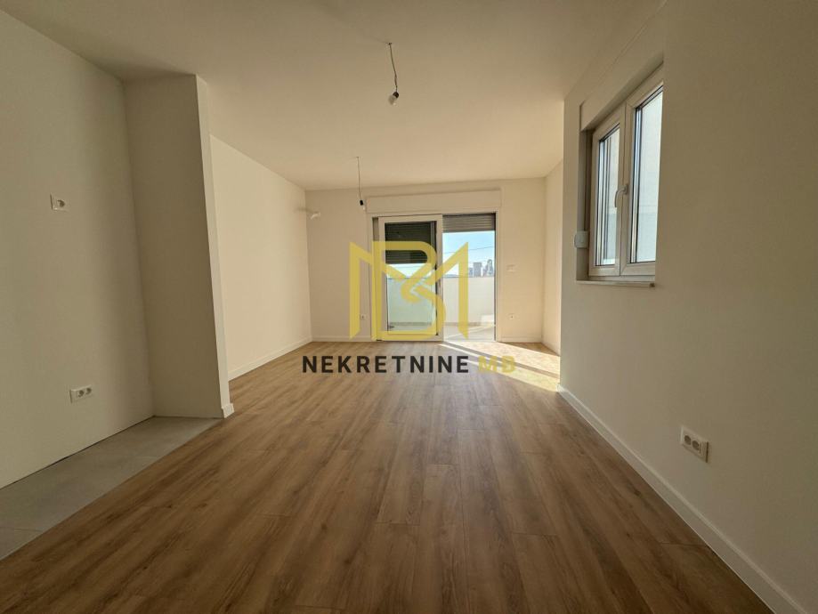 Stan se tlocrtno sastoji od kuhinje, dnevnog boravka, dvije spavaće sobe i jednog wc-a.