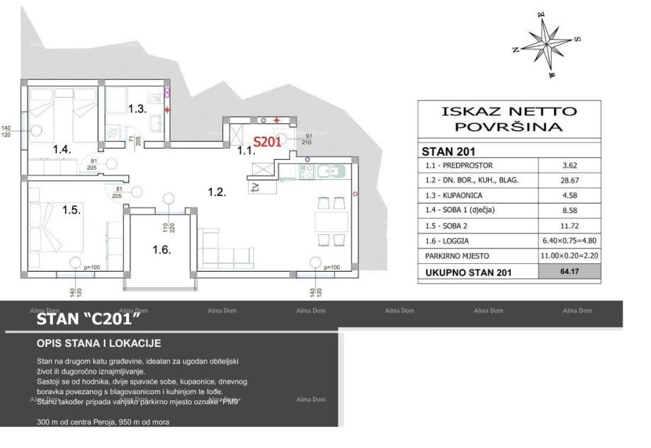 Prodajemo stan (C201) na drugom katu nove zgrade u Peroju!