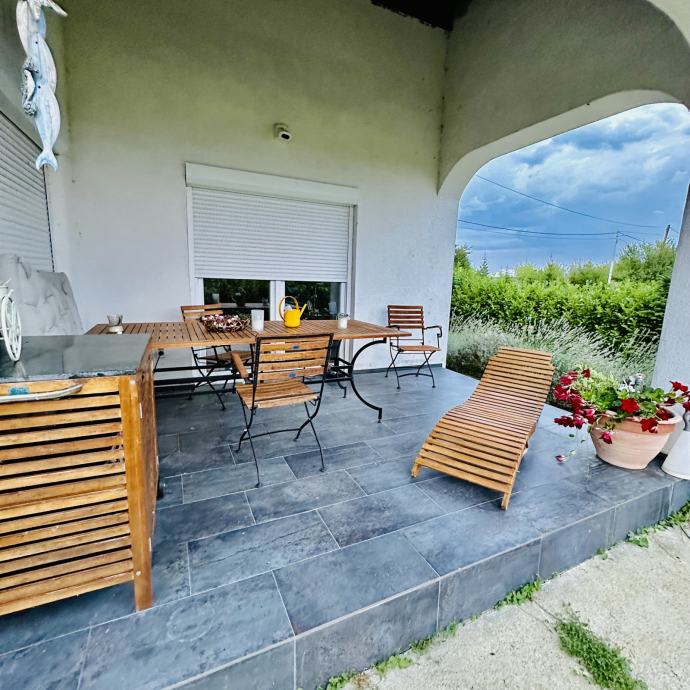 U Prodaji Prekrasna Kuca ,Oaza mira i Tišine , VRHUNSKE GRADE , Gdje je ulozeno puno Truda i ljubavi na Uredenje , nalazi se u Prekrasnoj Ulici Gdje je mir i Tisina udaljeno od glavne ceste oko 600 m ….CJELO IMANJE JE OGRADENO VRHUNSKOM OGRADOM + Ziva ograda Red Robin i Lovor visnja , U CJELOSTI UKUCNICA JE SKORO OKO 800/m2 kvadrata Full zelenilo travnjak -Vocke - Borovi- Cedar -Lavande i ostale biljke , NA SAMOM ULAZU JE OGROMNA NOVA GARAZA DOVRSENA OVE GODINE , 9m x 5 m ….Sve Vrhunske grade motorizirana vrata + 2 vrata ko staklene stjene koj te vode na dvoriste , isto tako u dvoriste ima drvarnica i spremiate za alat , Kuca ima svoju natkrivenu verandu , u prizemlje Se nalazi ulazni hodnik ,kupatilo sa Grohe Sistemom ,kuhinja sa Mile uredajima , Spavaca soba i Ogroman dnevni boravak koj je i najljepsi dio ove kuce sa visinom od 3.5 m do 6 m , unutra su Mramorske stepenice radene sa posebnim kamenom koj vode na prvi kat gdje se nalaze 3 Sobe + Kupatilo tualet sve vrhunsko opremljeno Grohe . U kuci ima plinski bojler 24 kw …koj se koristi za toplu vodu i po zelji i za grijanje , u dnevni boravak se nalazi i veliki kamin Vrhunski Austria , 8 kw