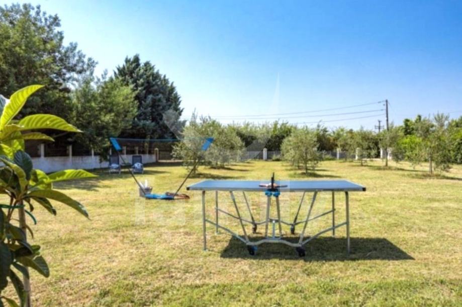 Pri tom idiličnom mjestu nalazi se ova lijepa, samostojeća i moderna kuća površine 160 m2 smještena na prostranoj okućnici od 4204 m2, ova nekretnina nudi savršen spoj udobnosti, privatnosti i mediteranskog načina života. Kuća se prostire na dvije etaže, u prizemlju se nalazi kuhinja koja je opremljena sa svim kuhinjskim aparatima, blagovaonice sa izlazom na komfornu terasu, ugodno osmišljenog dnevnog boravka, spavaća soba, toalet te kupaonica. Iz prizemlja unutarnjim stepenicama dolazi se na prvi kat koji je također opremljen sa dvije spavaće sobe sa izlazom na terase te jednim kupatilom. Podovi u nekretnini su obloženi keramikom, dok je sustav grijanja i hlađenja reguliran putem klima uređaja. Postavljena je drvena stolarija sa roletama, u sklopu kuće je i podrum kao jedno garažno mjesto.