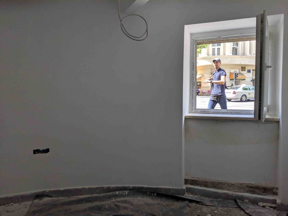 Prostor se nalazi na samom uglu zgrade te gleda direktno na jedno od najfrekventnijih križanja u Zagrebu.