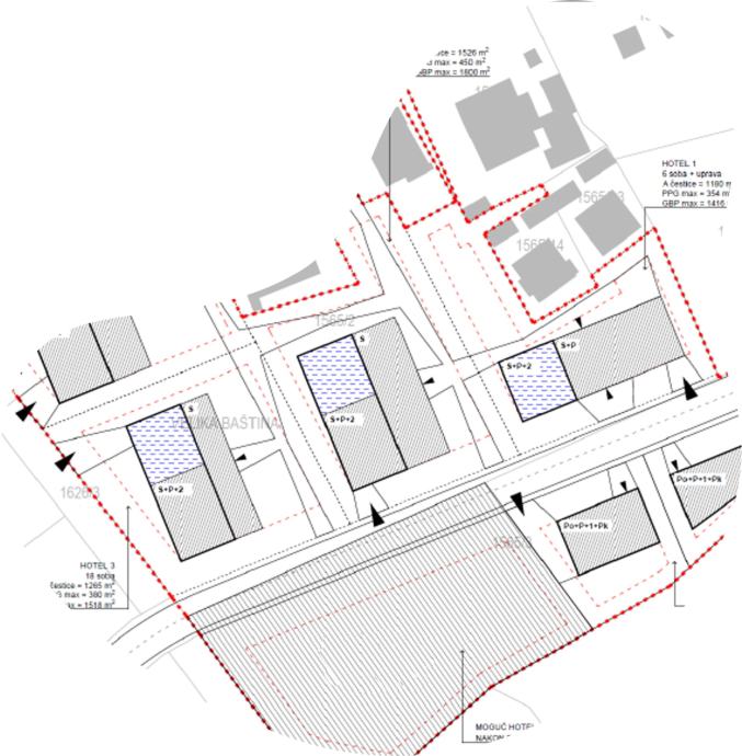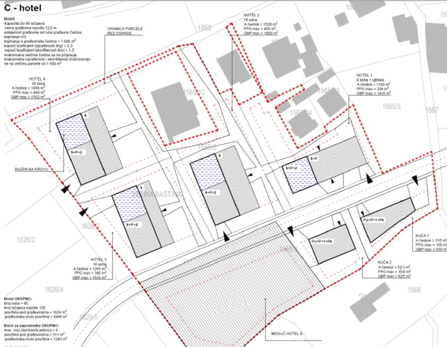 o Varijanta B: urbani sklop sa stambenim ili turističkim objektima (do 24 jedinice, 300–800 m²)