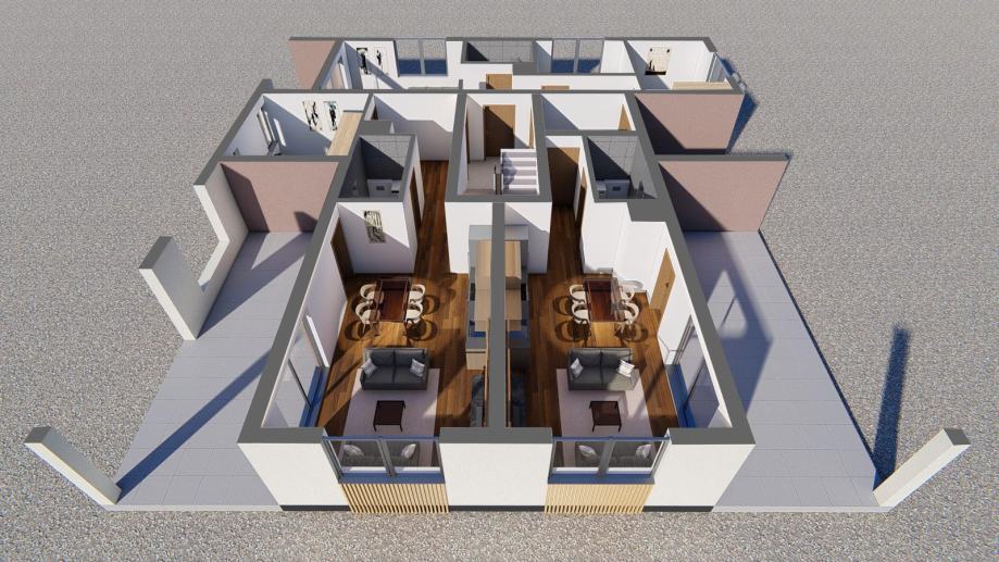 Predviđeno: 9 apartmana + 14 vanjskih parkirnih mjesta