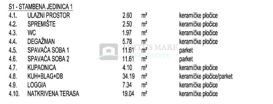 Stan S1 na prvom katu objekta je funkcionalno projektiran i pruža ugodan boravak, s prostranim dnevnim dijelom koji ima izravan izlaz na natkrivenu terasu, čime se postiže osjećaj privatnosti i otvorenosti prostora. Nekretnina je pogodna za cjelogodišnje korištenje, ali i kao investicija za turistički najam.