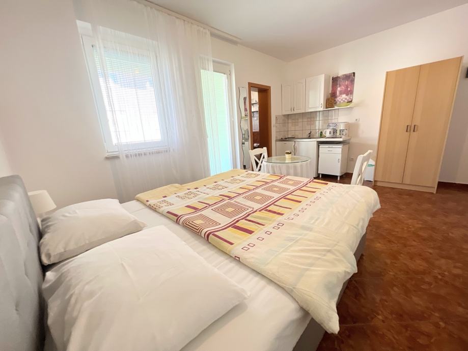 U tom slikovitom okruženju nalazi se potpuno opremljen studio apartman ukupne površine 27 m², smješten na prvom katu manje stambene zgrade. Apartman je spreman za useljenje, što ga čini izvrsnom prilikom za vlastiti dom, dugoročni ili turistički najam.