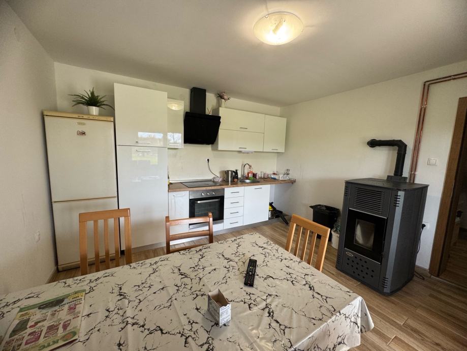 Na prodaju je kuca u Vojakovcu nedaleko Križevaca potpuno adaptirana 2023 godine. Promjenjen je krov, instalacije struje, vode, keramika, podovi, stolarija pvc 3slojna, izolacija zidova sa 15cm stiroporom, izolacija na stropu sa 18cm stiroporom. Kuća ima centralno grijanje na palete, priključak struje i vode. Postoji i bunar. Ispod kuće je podrum. Uz kuću se nalazi još jedan objekat površine 35m2 koji se može urediti kao ljetna kuhinja, zasebni stan ili spremište. Pogled sa parcele je prema Kalniku.