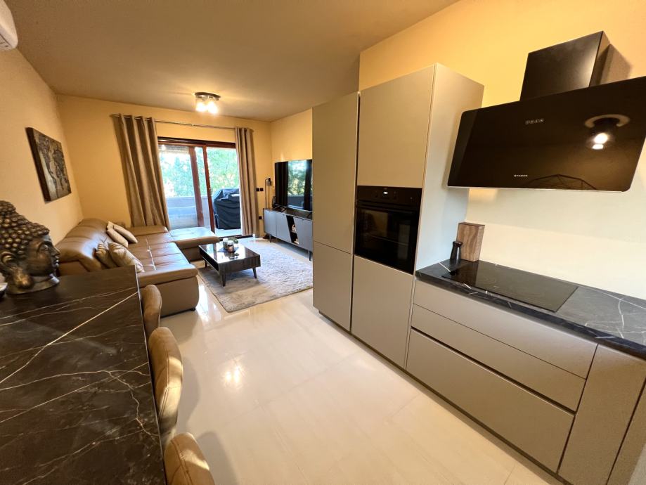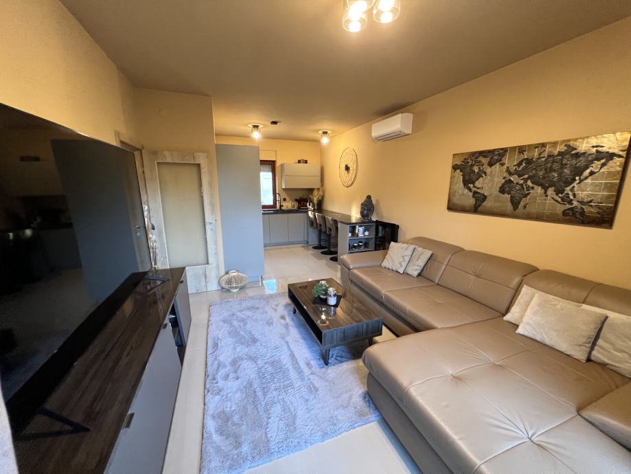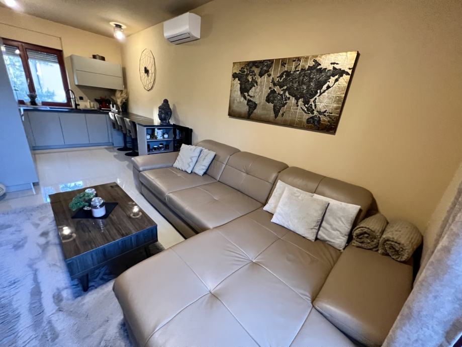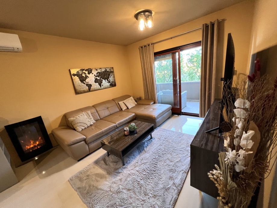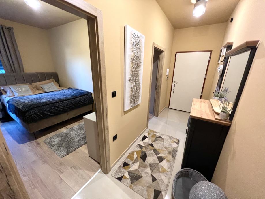 Nekretnina je iznimno kvalitetna te se sastoji od devnog boravka, kompletno novo opremljene kuhinje i blagovaonice, dvije spavaće sobe, kupaonice, balkona i spremišta.