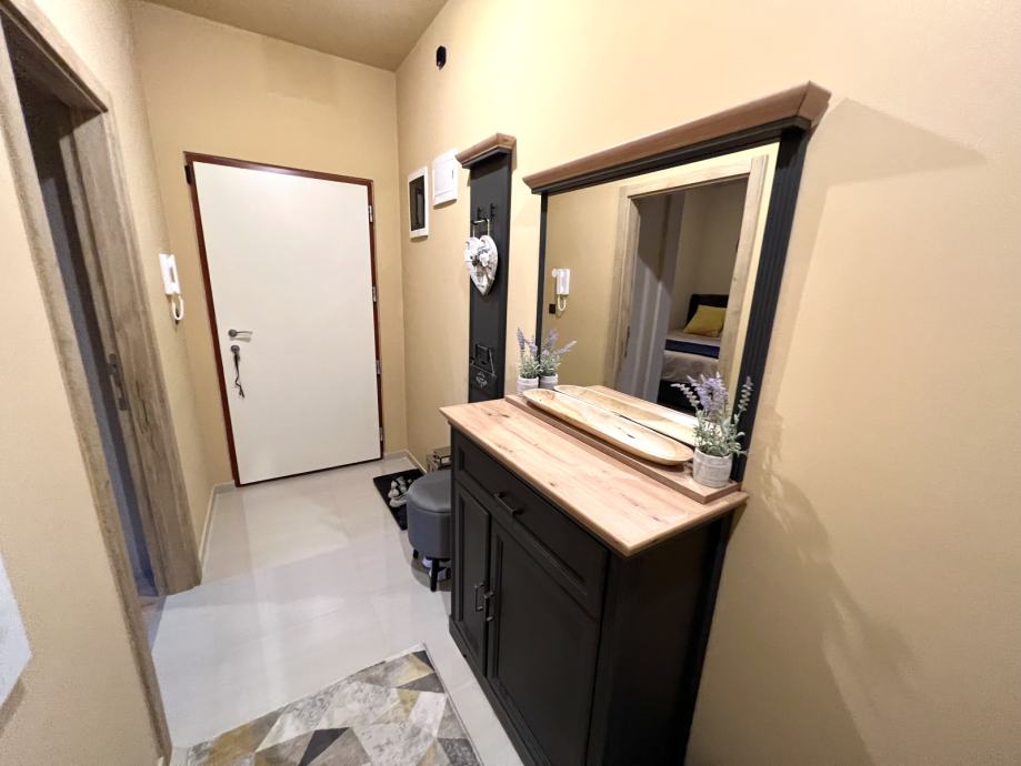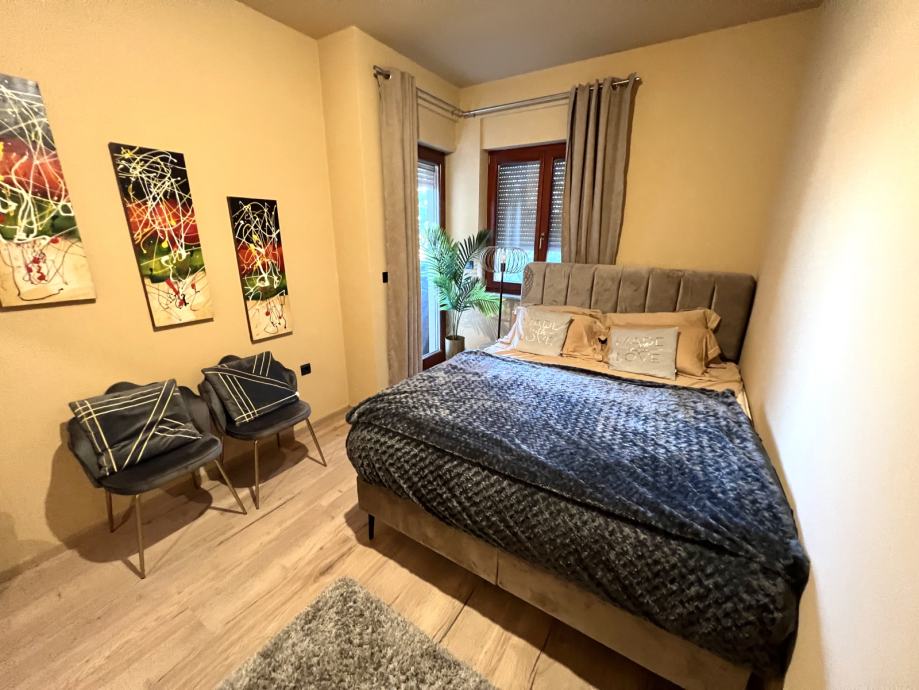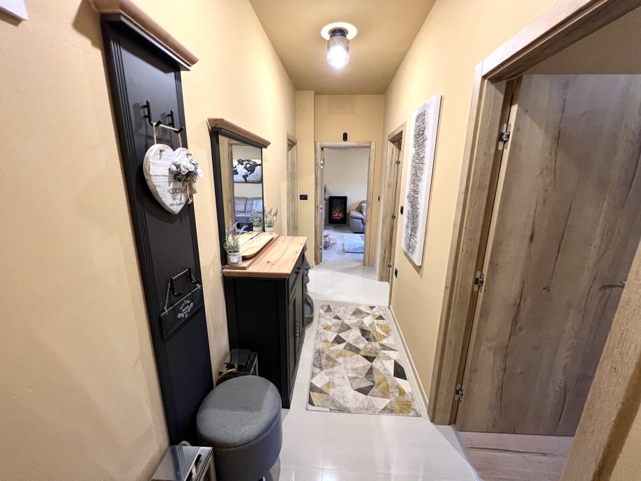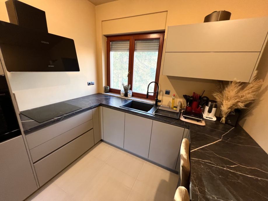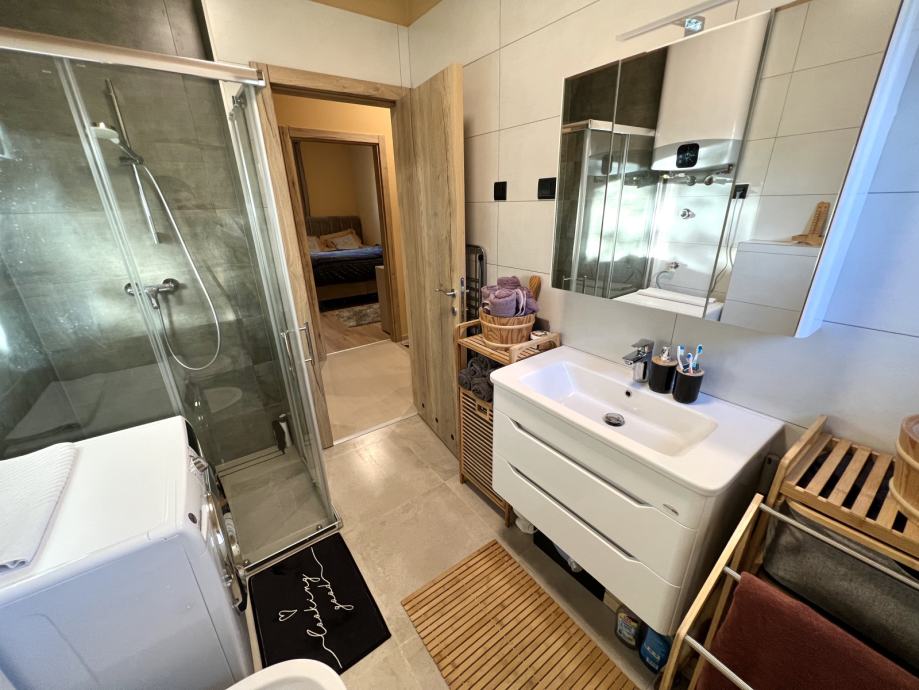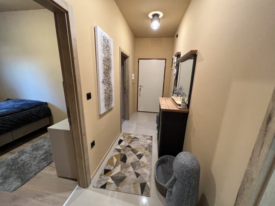 Nekretnina je iznimno kvalitetna te se sastoji od devnog boravka, kompletno novo opremljene kuhinje i blagovaonice, dvije spavaće sobe, kupaonice, balkona i spremišta.