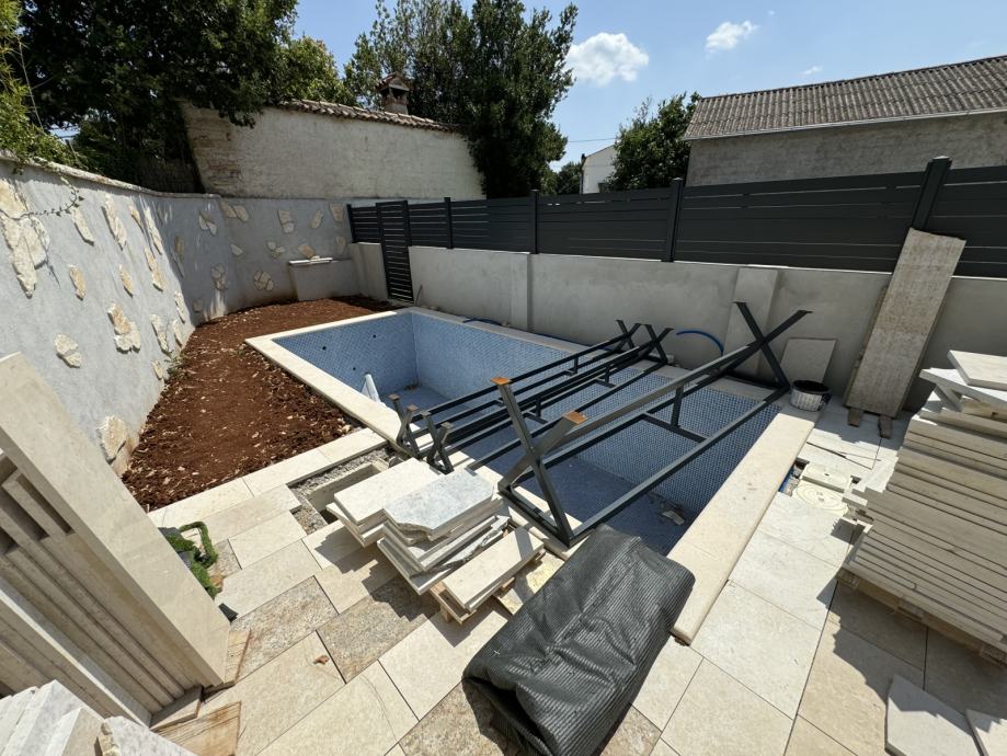 U dvorištu se nalazi bazen veličine 15 m2 i ljetna kuhinja.