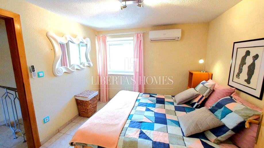 Ukupno raspolaže s tri spavaće sobe, tri kupaonice, kuhinjom s blagovaonicom i dnevnim boravkom, ostavom te prostranom terasom s koje se pruža očaravajući pogled na more i okolno mjesto. Interijer je klimatiziran, a kuća se prodaje u potpunosti namještena i opremljena, što novom vlasniku omogućuje useljenje bez dodatnih ulaganja.