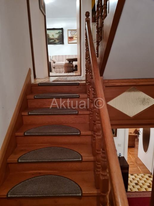 PRIZEMLJE se sastoji od ulaznog prostora, hodnika, kuhinje, velikog dnevnog boravka sa izlazom na prostranu terasu, sobe, kupaonice i wc-a. KAT se sastoji od 4 sobe, kupaonice i balkona a u POTKROVLJU se nalaze 3 sobe, vešeraj i kupaonica.