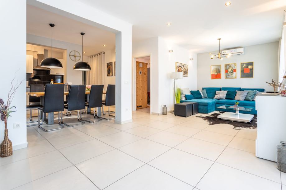 - Interijer: Moderan dizajn, kvalitetni materijali, puno prirodnog svjetla