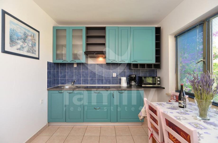 Ostala 4 stana namjenjeni su za turističko uspješno iznajmljivanje. Dva stana su površine 60 m2 i svaki od njih se sastoji od blagovaone, kuhinje, dnevnog boravka, dvije spavaće sobe, kupaonice i prostrane terase (18 m2), a druga dva stana se sastoje od jedne spavaće sobe, blagovaonice, kuhinje, dnevnog boravka, kupaonice i terase i površine su cca 40 m2. U prizemlju kuće nalazi se još jedan stan koji je u fazi adaptacije te bi u budućnosti mogao biti još jedan stan. Svaki od stanova opremljen je jedinicom klima uređaja, PVC stolarijom sa komarnicima i prodaju se svim pokretninama. Okućnica podrazumijeva bazen površine 30 m2, izuzetno prostranu garažu površine 40 m2 i još 4 parkirnih mjesta, dvije vanjske ostave.