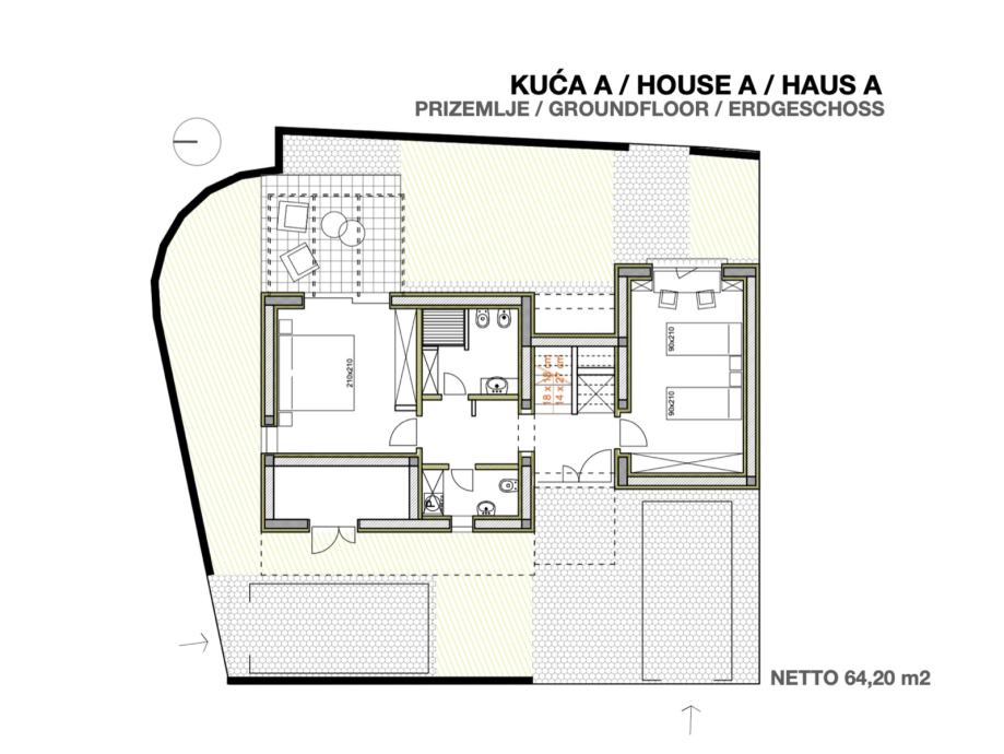 Kuća A: Dvorište 154 m² | Stambena površina 129 m² | Pogled na more