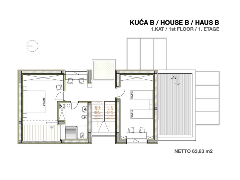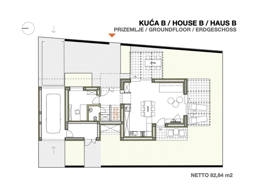 Kuća B: Dvorište 187 m² | Stambena površina 147 m² | Pogled na more