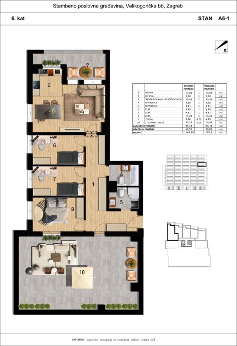 Ukupno - 146,39 m² (s koeficijentom 102,30 m² m2)