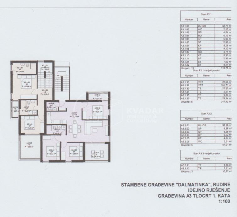 Stan, oznake A3.3, smješten je na prvom katu i sastoji se od slijedećih prostorija: