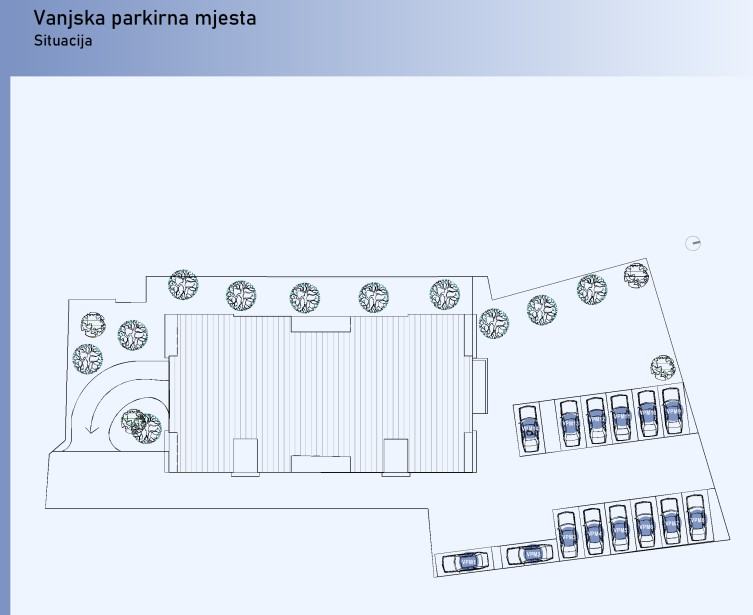 - Ispred zgrade nalazi se 15 parkirnih mjesta.