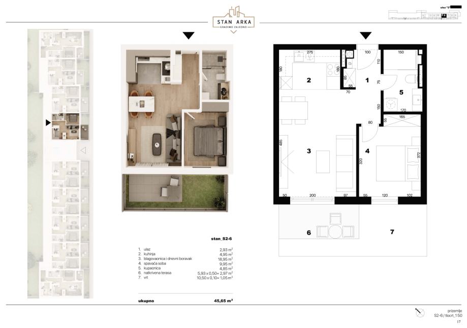 STAN S2-6 - 44,60 m2, 2-sobni, prizemlje (ULAZ 2)