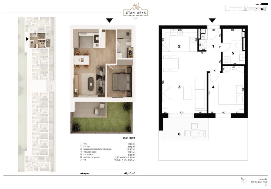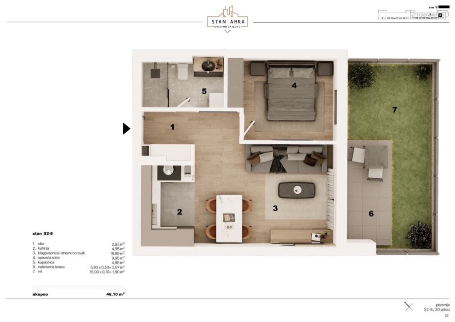 STAN S2-8 - 44,60 m2, 2-sobni, nalazi se u prizemlju (ULAZ 2)