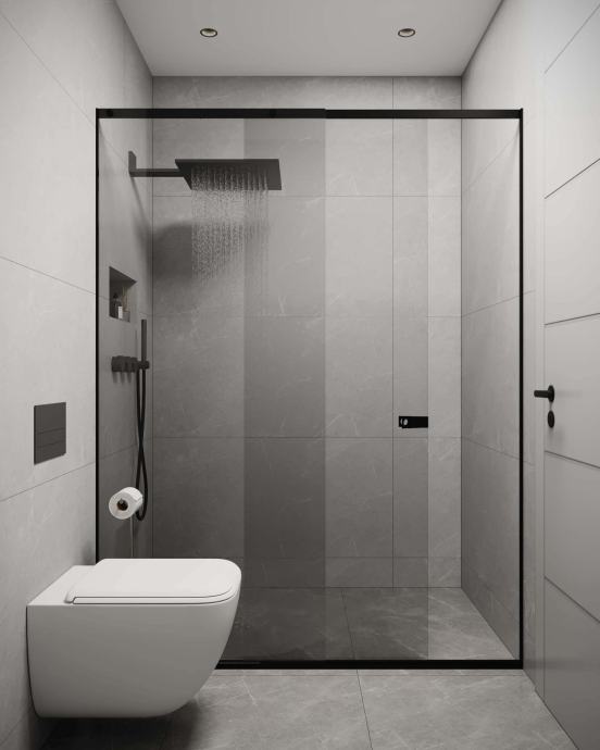 * Potpuno opremeljena kupaonica, walk-in tuš kabina, umivaonik sa slavinom, ormarić i ogledalo