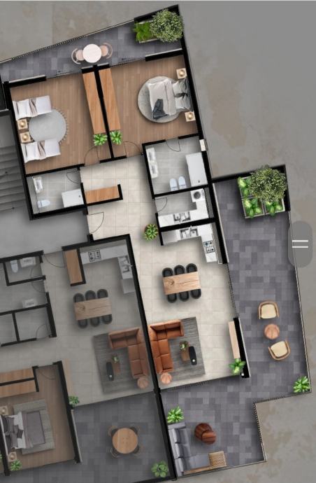 Za buduće stanare na zadnjoj etaži objekta je predviđen zajednički bazen i sunčalište kao i hobby room. Objekt je interpoliran u smjeru jug – sjever, južna strana je okrenuta prema moru.