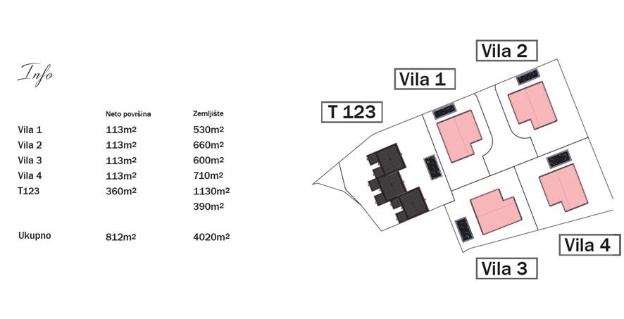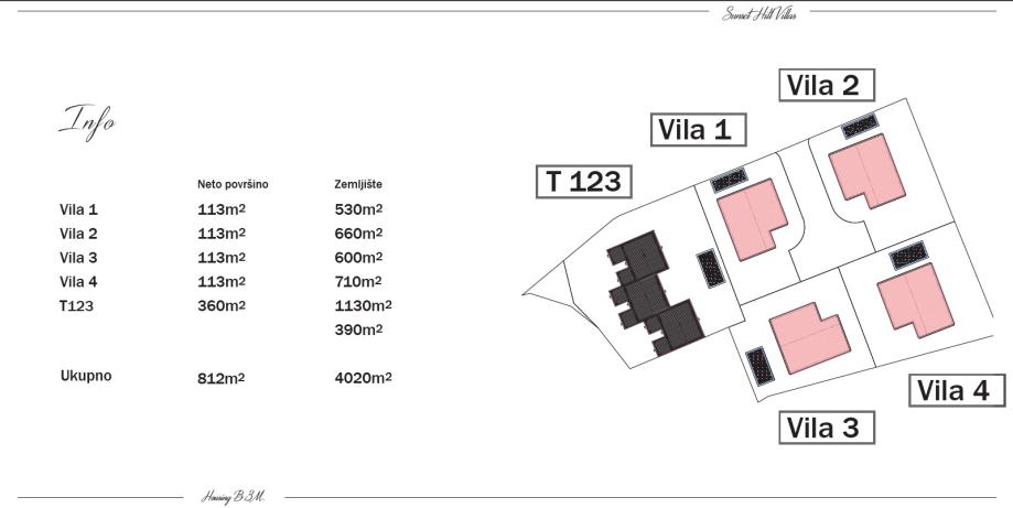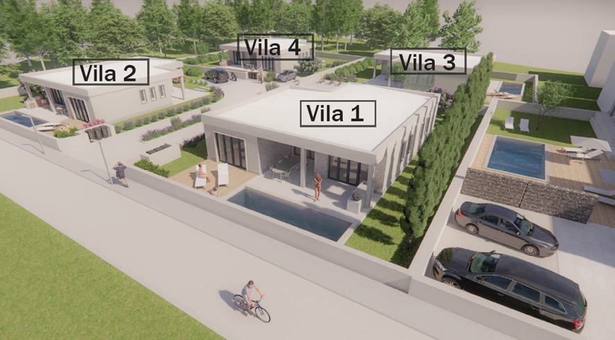 Otkrijte čaroban svijet luksuza u našem ekskluzivnom kompleksu vila. Svaka od četiri vile s 3 prostrane spavaće sobe nudi ultimativni spoj udobnosti i elegancije. Svaka spavaća soba ima svoju privatnu kupaonicu, pružajući neusporedivu razinu privatnosti i praktičnosti.