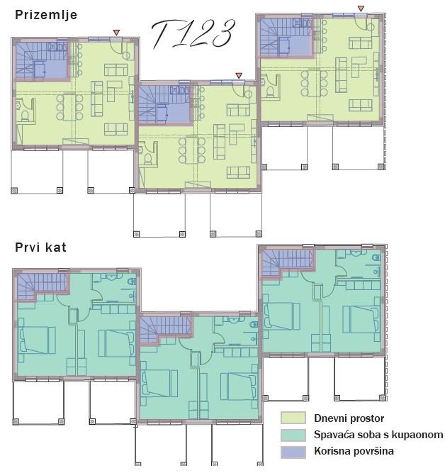 Dizajniran s otvorenim tlocrtom, svaki dom obiluje prirodnim svjetlom i funkcionalnošću, pružajući udoban i moderan životni prostor za cijelu obitelj.