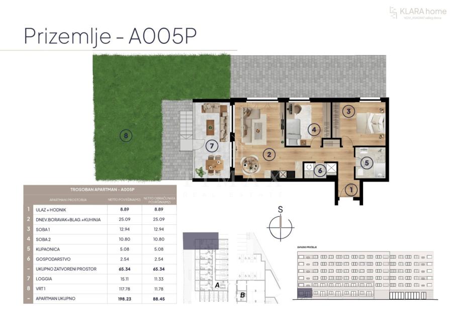 Projekt KLARA home, Trosoban stan A005P, Prizemlje s vrtom, 88,45 m2 (prodaja)